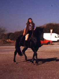 Elena getting ready to ride Guapo. |